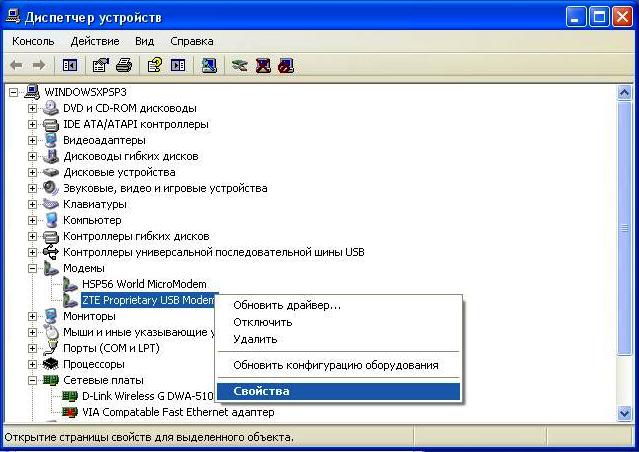 3.Вставляем модем в системный блок, устанавливаем драйвер модема. В диспетчер устройств, находим наш модем и заходим в его свойства