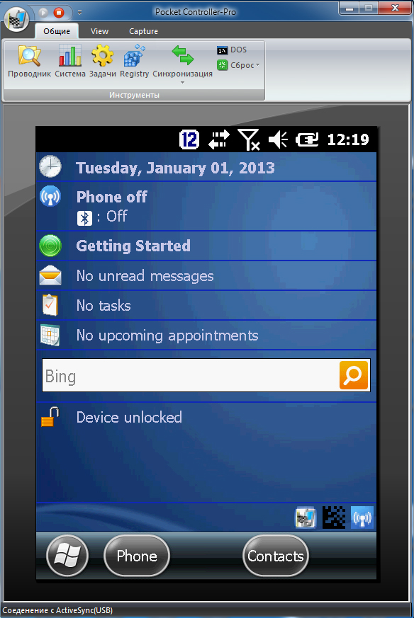 9. Как и в пункте 6 подключаемся повторно к ТСД с помощью Pocket Controller-Pro. На мониторе видим экран ТСД, с возможностью полного управления