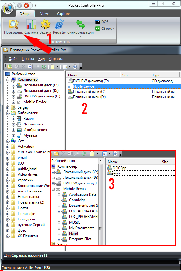 10. В Pocket Controller-Pro жмем на иконку Проводник. И переходим [Mobile Device -> Nand] и создаем в каталоге Новую папку, переименовываем её как [temp]