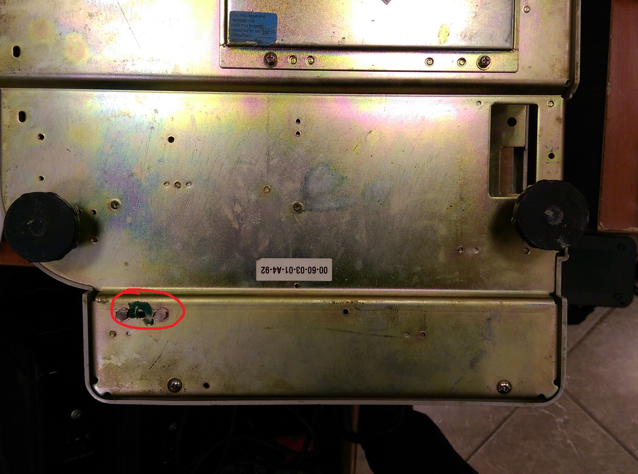 На выключенных весах нажимаем на переключатель снизу для перехода в "Служебный режим".