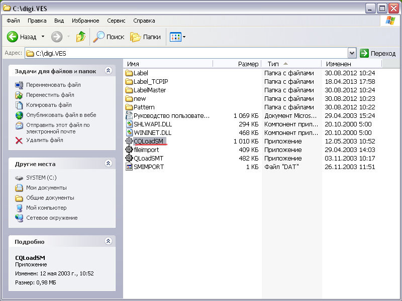 C:\digi.VES\CQLoadSM.exeДалее переходим к Загрузке этикетки: Вкладка Этикетки-Этикетка1-Поиск файла Выбираем файл этикетки: