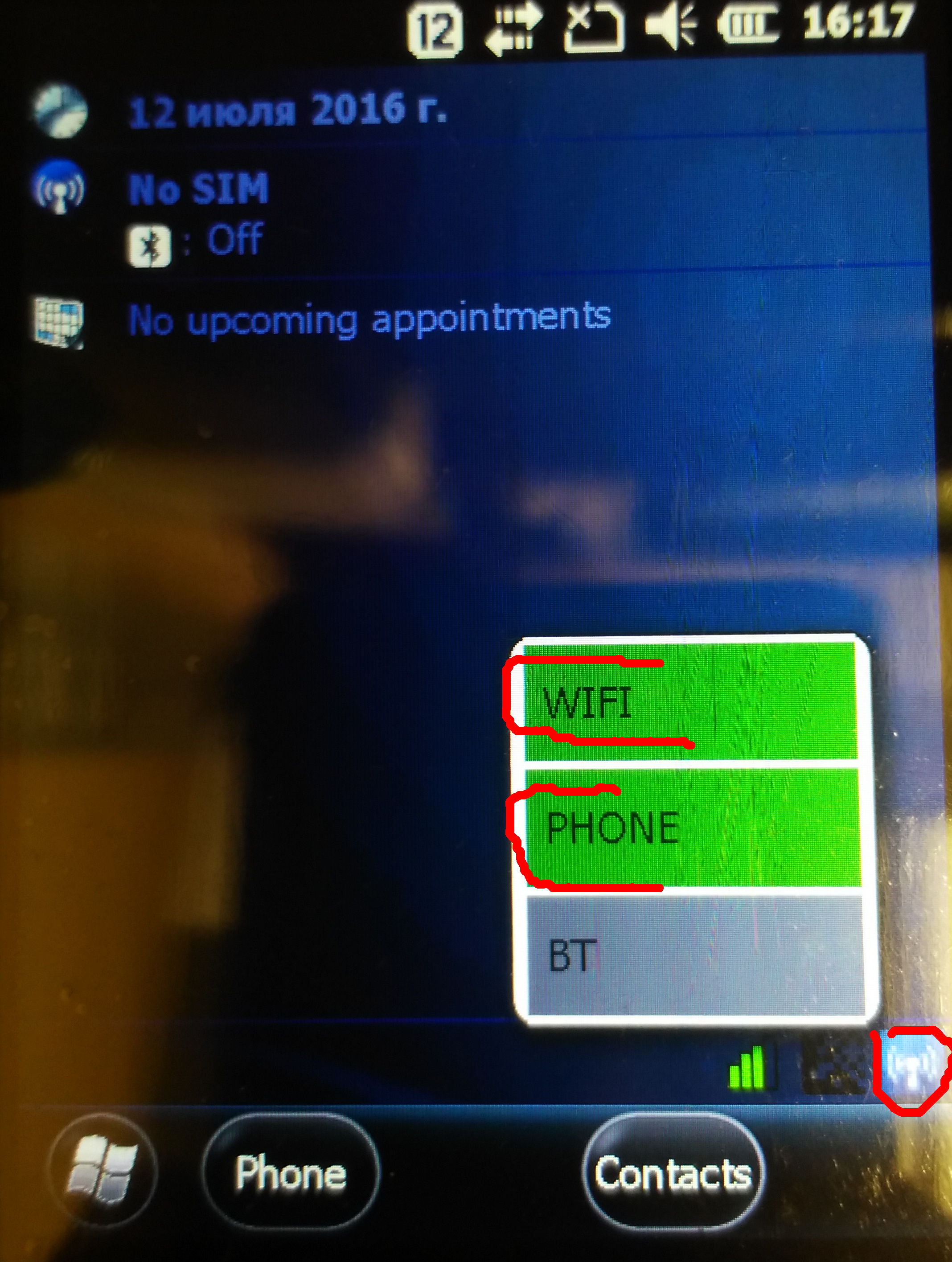 Если Phone и Wifi как на картинке горят зеленым - все нормально.