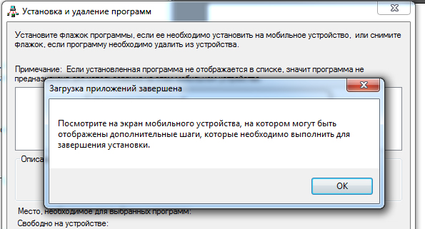 7.На задаваемый вопрос в всплываемом окне отвечаем 'ДА'. Спустя пару секунд программа предложить обратить внимание на экран ТСД и продолжить установку непосредственно на нем.