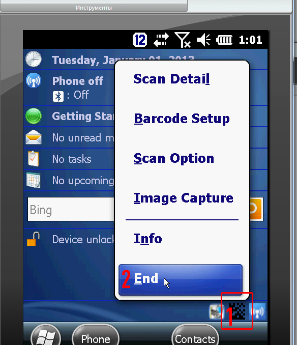 ПРЕДВАРИТЕЛЬНО ЗАВЕРШИВ ПРОГРАММУ BARCODE НА ТСД